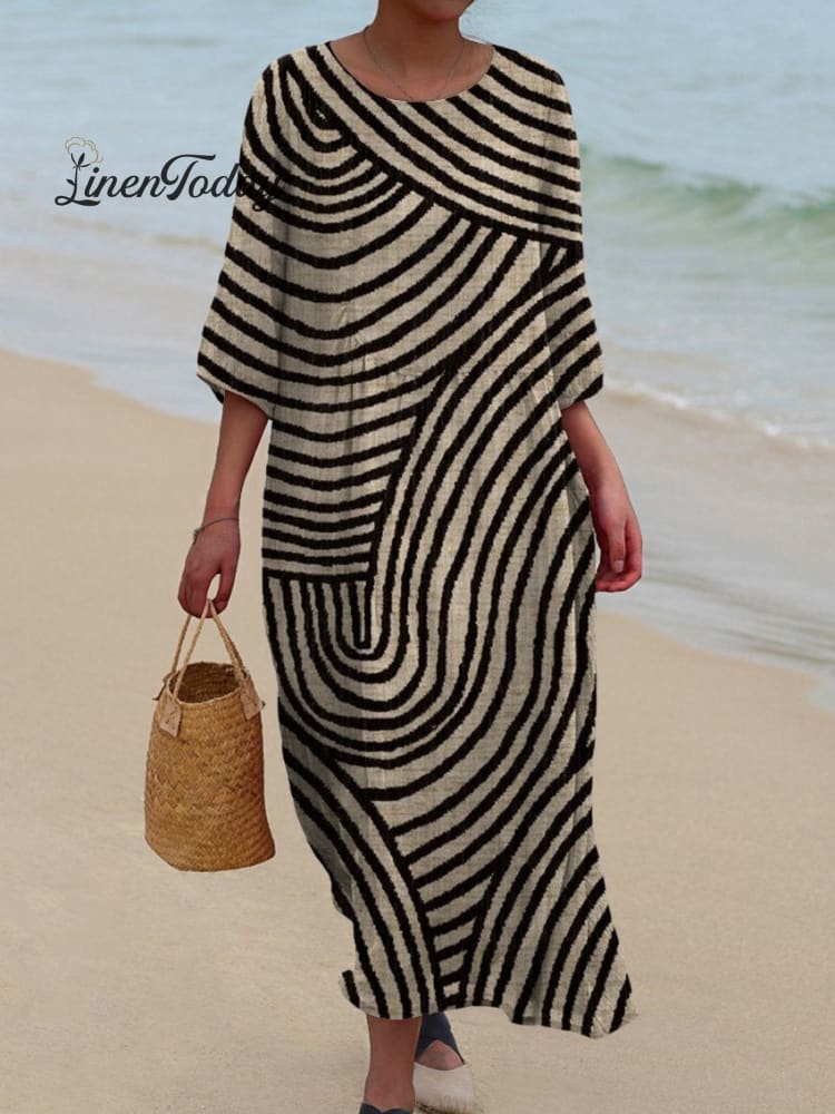 Women's Retro Hand Drawn Geometric Line Print Pocket Cotton Dress